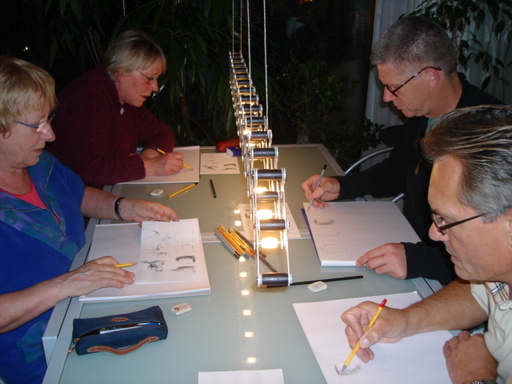 Najaar 2007 is een nieuwe schildergroep gestart. Op de foto zijn een aantal deelnemers druk met de tulpen die met oliekrijt worden ingevuld. Eerst beginnen we met: hoe schets je een tulp.