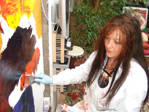 het atelier Waar is het beter toeven dan in het atelier dat als wintertuin in de tuin van de Lijsterstraat te Neede aanwezig is.