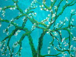 2009Een appelboom in bloei met de grillige stam en de geurende bloesem. het is een 2-luik (dubbele afmeting) en het kan ook in de breedte opgehangen worden, totaal ander effect !