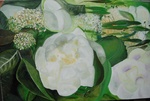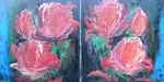 2006Pioenrozen aangeboden tijdens de opening van de expositie in de havezate. Bijzonderheid: dit 4-luik is op 8 manieren aan elkaar te passen zodat het elke keer een ander schilderij is. Bij de foto's is helaas aan alle kanten ong.10 cm weggeknipt zodat de overgang niet zo goed zichtbaar is.