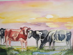 2001Koeien en ondergaande zon.