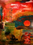 Schepen 2007 geeft een totaal nieuwe maritieme schilderstijl weer. De afmeting 120 cm x 100 cm