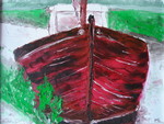 2007Houten scheepje gelegen in de vaart te Drachten.